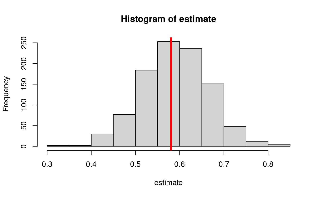 text(450, 0.10, "n=1000 repetitions = 1000 ", cex = 1.2)